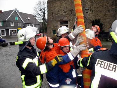 des Löschzuges IV - Witzhelden ohne Probleme. Mit Holzkeilen wurde der Mast