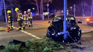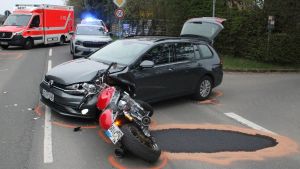 Ein Pkw hatte sich überschlagen und kollidierte mit einem Bus. Die zwei Insassen des Pkw wurden leicht verletzt und vom Rettungsdienst versorgt. Niemand war eingeklemmt. Die Löschzüge 2 bis 4 konnten auf der Anfahrt bereits ihren Einsatz abbrechen. Die Einsatzkräfte der Feuerwehr unterstützten die Beamten der Polizei. Für die Dauer der Arbeiten blieb die Kreuzung gesperrt. |